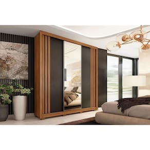Guarda Roupa 3 Portas de Correr (1 c/ Espelho) e 2 Gavetas c/ Pés Moema Flex Amêndola/Nude ou Preto - Demóbile - Blush