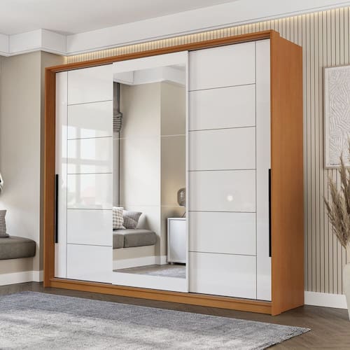 O guarda-roupa 3 portas de correr 4 gavetas Lisboa, da Politorno Móveis, é a combinação perfeita de funcionalidade e elegância. Com 200 cm de altura, 220 cm de largura e 47,5 cm de profundidade, oferece amplo espaço para organizar roupas, calçados e acessórios de forma eficiente. As portas de correr garantem facilidade de uso em ambientes menores, enquanto as 4 gavetas, com corrediças telescópicas, proporcionam um deslizamento suave e preciso. Fabricado em MDP/MDF com acabamento em pintura UV, o guarda-roupa é resistente e durável. Além disso, conta com espelho, agregando praticidade e sofisticação ao ambiente. Seu design sofisticado e atemporal, junto aos puxadores externos, trazem praticidade e um toque refinado ao espaço.