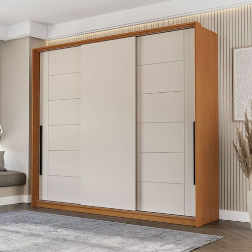 O guarda-roupa Lisboa 2 portas de correr 2 gavetas, da Politorno Móveis, é uma escolha prática e elegante para quem deseja otimizar o espaço com sofisticação. Com 200 cm de altura, 220 cm de largura e 44,5 cm de profundidade, ele oferece amplo espaço para organizar roupas e acessórios de forma eficiente. As portas de correr facilitam o acesso em ambientes menores, enquanto as gavetas, com corrediças telescópicas, garantem deslizamento suave e preciso. Fabricado em MDP/MDF com acabamento em pintura UV, é resistente e durável. Seu design sofisticado e atemporal, aliado aos puxadores externos, trazem um toque refinado ao ambiente, tornando-o ideal para quem busca qualidade e funcionalidade. Acabamento da Prateleira: Pintura UV Escala de Brilho da Prateleira: Semi-Fosco Possui Cabideiros: Sim Acabamento da Gaveta: Pintura UV Escala de Brilho da Gaveta: Semi-Fosco Possui Organizador de Gaveta: Não Acabamento da Porta: Pintura UV Escala de Brilho da Porta: Semi-Fosco Material do Puxador da Porta: MDF Altura dos Pés: 0,37 cm Altura Máxima dos Pés: 0.3700 Ambiente Principal: Quarto codigo_ean: 7900288111890 Complexidade da Montagem: Média: pode ser montado por mais de uma pessoa e/ou necessite de maior conhecimento para montagem Cor: Freijo/Creme Cor do Produto: Freijo/Creme Cor do Puxador: Preto Cor Interna: Freijó Escala de Brilho: Semi-Fosco Espessura da Estrutura (mm): 15 mm Espessura das Portas (mm): 15 mm Espessura das Prateleiras (mm): 15 mm Espessura do Fundo (mm): 3 mm Espessura do Fundo das Gavetas (mm): 3 mm Gaveta com Chave: Não Itens Inclusos: 1 Guarda-Roupa, Kit Ferragens e Manual de Montagem Linha ou Coleção: Lisboa Manual de Especificação Técnica: https://product-hub-prd.madeiramadeira.com.br/984058/documents/f46f1d7c-4c57-4624-a64b-88620e40863a2783470622417437054677281.pdf Manual de Montagem e Instalação: https://product-hub-prd.madeiramadeira.com.br/984058/documents/61299d99-ae0d-43c2-8bec-f7085d2985f02783469622417437054667955.pdf Marca: Politorno Material da Gaveta: MDF/MDP Material da Porta: MDF/MDP Material da Prateleira: MDF/MDP Material dos Pés: MDF Material Principal: MDF/MDP modular: Não Necessita Montagem: Sim Origem do Produto: Nacional Peso: 127,29 kg Peso Máximo por Gaveta: 5 kg Peso Máximo por Prateleira: 10 kg Porta Janelada: Não Possui Calceiros: Não Possui Espelho: Não Possui Pés: Rodapé Possui Portas: Sim Possui Prateleiras: Sim Produto Montado: Sim Quantidade de Cabideiros: 02 Cabideiros Quantidade de Gavetas: 04 Gavetas Quantidade de Prateleiras: 10 Prateleiras Recomendações de Uso, Manutenção e Limpeza: Utilize um pano macio umedecido com água e sabão neutro, seguido de pano seco. Não utilize produtos químicos ou abrasivos para limpeza, pois estes danificam o revestimento do móvel. Sistema de Montagem: Cavilha, Parafuso, Minifix e prego Tipo de Corrediça da Gaveta: Metálica Telescópica Tipo de Dobradiça/Corrediça da Porta: Alumínio Tipo de Gaveta: Interna Tipo de Guarda-Roupa: Casal Tipo de Puxador da Gaveta: Não Possui Tipo de Puxador da Porta: Externo