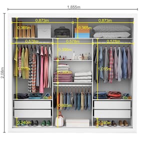 Dimensões do Produto Montado: Altura: 208 cm Largura: 188 m Profundidade: 54 cm Peso: 121,85 kg