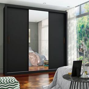 Guarda Roupa Conquista Plus com 3 Portas de Correr, acompanha 4 espelhos na porta do meio, que além de serem funcionais, trazem a sensação de amplitude, principalmente em ambientes menores. Ideal para cabides de até 37cm, ele possui em seu interior 4 gavetas e 4 prateleiras para guardar suas roupas de cama, banho e o que mais for preciso, com a elegância e qualidade.
