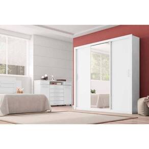 Guarda Roupa 3 Portas De Correr E 2 Gavetas C/ Espelho Residence Branco - Demóbile