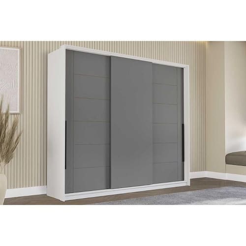 Guarda Roupa 3 Portas de Correr e 4 Gavetas Lisboa Branco/Cinza - Politorno - Blush