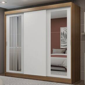 O Guarda-Roupa Kansas da Madesa possui três portas de correr com deslizamento suave, trilhos em alumínio para maior resistência e dois puxadores externos. Duas das portas contam com o diferencial dos espelhos, que são bastante práticos.