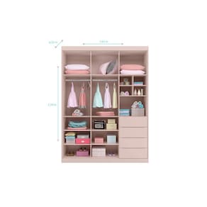 Dimensões do Roupeiro: (Altura x Largura x Profundidade): 220 x 165 x 52 cm.