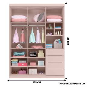 Dimensões do guarda roupa:Largura 165 cm; Profundidade 52 cm; Altura 220 cm;