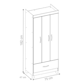 Produzido em MDP. Acompanha cabideiros em madeira, puxadores cromados e pés em PVC