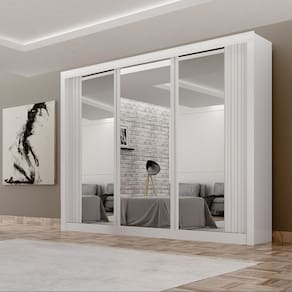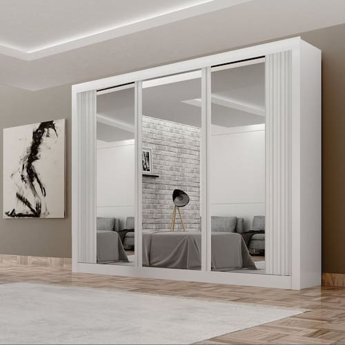Quer deixar seu quarto ainda mais lindo e sofisticado, aposte no guarda roupas Milano 03 portas com espelho na porta central e portas laterais ripadas.