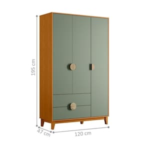 Feito em 2 gavetas com corrediça telescópicas, 3 portas, 1 cabideiros e 5 prateleiras