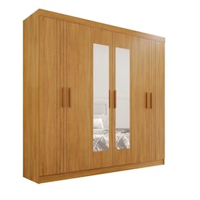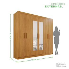 Este guarda-roupa elegante possui seis portas de bater, sendo que duas delas têm espelhos, facilitando o acesso ao seu interior e otimizando o uso do espaço. Com quatro gavetas espaçosas, oferece praticidade na organização de roupas e acessórios. Seu design moderno e funcional se adapta a diversos estilos de decoração. Feito com materiais de alta qualidade, combina durabilidade e sofisticação.