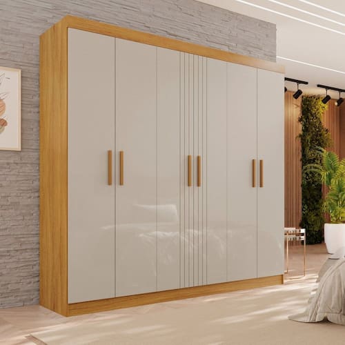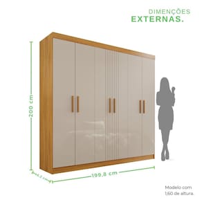 Este guarda-roupa elegante possui seis portas de bater que facilitam o acesso ao seu interior, otimizando o uso do espaço. Com quatro gavetas espaçosas, oferece praticidade na organização de roupas e acessórios. Seu design moderno e funcional se adapta a diversos estilos de decoração. Feito com materiais de alta qualidade, combina durabilidade e sofisticação. Acabamento da Prateleira: Pintura UV Escala de Brilho da Prateleira: Semi-Brilho Possui Cabideiros: 02 Acabamento da Gaveta: Pintura UV Possui Organizador de Gaveta: Não Acabamento da Porta: Pintura UV Escala de Brilho da Porta: Semi-Brilho Material do Puxador da Porta: MDF Ambiente Principal: Quarto codigo_ean: 7909903849811 Complexidade da Montagem: Alta: deve ser montado por um montador especializado Cor: Cinamomo / Off White Cor do Produto: Cinamomo / Off White Escala de Brilho: Semi-Brilho Itens Inclusos: 1 Guarda roupa, manual de montagem e kit ferragens. Linha ou Coleção: Lisboa Manual de Montagem e Instalação: https://product-hub-prd.madeiramadeira.com.br/928928/documents/81e43fc6-156a-4e6d-b710-0158001795c92185841352817223653254295.pdf Material da Gaveta: MDP Material da Porta: MDP Material da Prateleira: MDP Material Principal: MDP modular: Não Montagem Flex: Sim, tem as opções entre montar com calceiro ou com dois cabideiros. Necessita Montagem: Sim Origem do Produto: Nacional Peso: 109,5 kg Peso Máximo por Gaveta: 3 kg Peso Máximo por Prateleira: 5 kg Possui Calceiros: Não Possui Espelho: Não Possui Pés: Não Possui Portas: Sim Possui Prateleiras: Sim Produto Montado: Sim Recomendações de Uso, Manutenção e Limpeza: Pano levemente umedecido e pano seco. Não utilizar produtos de limpeza Sistema de Montagem: Parafusos e cavilhas Tipo de Corrediça da Gaveta: Metálica Telescópica Tipo de Dobradiça/Corrediça da Porta: Metálica Tipo de Gaveta: Interna Tipo de Guarda-Roupa: Casal Tipo de Puxador da Gaveta: Não Possui Tipo de Puxador da Porta: Externo