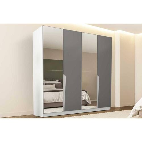 Guarda Roupa Casal 4 Portas (2 c/ Espelho) e 4 Gavetas Porto Branco/Cinza - Politorno