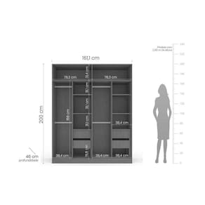 Dimensões(Cm): Comprimento(Profundidade): 46cm x Largura: 161,2cm x Altura: 200cm