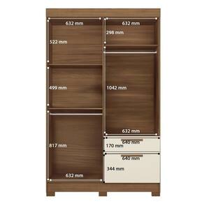 puxadores são em MDF revestidos, trazendo beleza e durabilidade ao guarda-roupa. O acabamento é