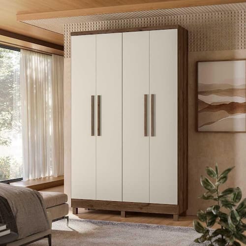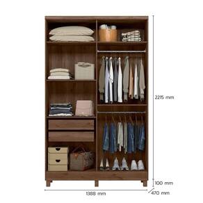 Cabideiros oblongos metálicos e ótima divisão interna para roupas longas;