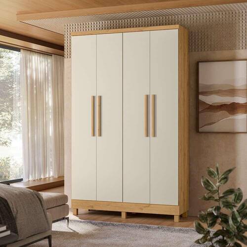 Guarda Roupa 4 Portas 2 Gavetas Luna Freijo Toque Off White Brilho