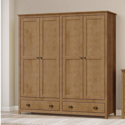 O Guarda Roupa 4 Portas e 2 Gavetas da Linha Topázio- Finestra Móveis é produzido 100% de madeira maciça de pinus de reflorestamento. Os pés, a estrutura e divisórias internas são na cor Freijó, destacando a cor e detalhes característicos da madeira.