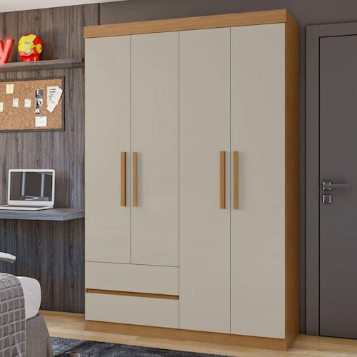Precisando dar uma renovada no seu quarto? Que tal este Guarda-Roupa Zeus? Um móvel elegante, charmoso e amplo para você organizar e guardar os seus pertences. Confeccionado em materiais de ótima qualidade e resistência. O design moderno, proporcionando uma decoração sofisticada e agradável. Curtiu? Acabamento da Prateleira: Pintura Escala de Brilho da Prateleira: Fosco Possui Cabideiros: 01 Acabamento da Gaveta: Pintura Escala de Brilho da Gaveta: Fosco Possui Organizador de Gaveta: Não Acabamento da Porta: Pintura Escala de Brilho da Porta: Fosco Material do Puxador da Porta: MDF Ambiente Principal: Quarto Complexidade da Montagem: Alta: deve ser montado por um montador especializado Cor: Amêndoa Clean/Off White Cor do Produto: Amêndoa Clean/Off White Escala de Brilho: Fosco Gaveta com Chave: Não Itens Inclusos: 1 Guarda roupa e manual de montagem. Linha ou Coleção: Zeus Manual de Montagem e Instalação: https://cdn2.madeiramadeira.com.br/atributo/mOveis-lopas/1684736-38985-a3-prospecto-roupeiro-zeus-plus-4pts.pdf Material da Gaveta: MDP Material da Porta: MDF Material da Prateleira: MDP Material Principal: MDP modular: Não Necessita Montagem: Sim Origem do Produto: Nacional Peso: 69.31 Peso Máximo por Gaveta: 4 Peso Máximo por Prateleira: 6 Possui Calceiros: Não Possui Espelho: Não Possui Pés: Não Possui Portas: Sim Possui Prateleiras: Sim Quantidade de Gavetas: 02 Gavetas Quantidade de Prateleiras: 05 Prateleiras Recomendações de Uso, Manutenção e Limpeza: Limpar somente com pano macio e seco, não colocar diretamente em incidência da luz solar, não colocar em lugar úmido. Sistema de Montagem: Parafusos e Cavilhas. Tipo de Corrediça da Gaveta: Metálica Telescópica Tipo de Dobradiça/Corrediça da Porta: Metálica Tipo de Gaveta: Externa Tipo de Guarda-Roupa: Casal Tipo de Puxador da Gaveta: Embutido Tipo de Puxador da Porta: Externo