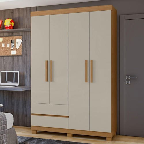 Precisando dar uma renovada no seu quarto? Que tal este Guarda-Roupa Zeus? Um móvel elegante, charmoso e amplo para você organizar e guardar os seus pertences. Confeccionado em materiais de ótima qualidade e resistência. O design moderno, proporcionando uma decoração sofisticada e agradável. Curtiu? Acabamento da Prateleira: Pintura Escala de Brilho da Prateleira: Fosco Possui Cabideiros: 01 Acabamento da Gaveta: Pintura Escala de Brilho da Gaveta: Fosco Possui Organizador de Gaveta: Não Acabamento da Porta: Pintura Escala de Brilho da Porta: Fosco Material do Puxador da Porta: MDF Acabamento dos Pés: Pintura Altura dos Pés: 7 Ambiente Principal: Quarto Complexidade da Montagem: Alta: deve ser montado por um montador especializado Cor: Amêndoa Clean/Off White Cor do Produto: Amêndoa Clean/Off White Escala de Brilho: Fosco Gaveta com Chave: Não Itens Inclusos: 1 Guarda roupa e manual de montagem. Linha ou Coleção: Zeus Manual de Montagem e Instalação: https://cdn2.madeiramadeira.com.br/atributo/mOveis-lopas/1684780-38985-a3-prospecto-roupeiro-zeus-plus-4pts.pdf Material da Gaveta: MDP Material da Porta: MDF Material da Prateleira: MDP Material dos Pés: PVC Material Principal: MDP modular: Não Necessita Montagem: Sim Origem do Produto: Nacional Peso: 69.87 Peso Máximo por Gaveta: 4 Peso Máximo por Prateleira: 6 Possui Calceiros: Não Possui Espelho: Não Possui Pés: 06 Possui Portas: Sim Possui Prateleiras: Sim Quantidade de Gavetas: 02 Gavetas Quantidade de Prateleiras: 05 Prateleiras Recomendações de Uso, Manutenção e Limpeza: Limpar somente com pano macio e seco, não colocar diretamente em incidência da luz solar, não colocar em lugar úmido. Sapatas Niveladoras: Não Sistema de Montagem: Parafusos e Cavilhas. Tipo de Corrediça da Gaveta: Metálica Telescópica Tipo de Dobradiça/Corrediça da Porta: Metálica Tipo de Gaveta: Externa Tipo de Guarda-Roupa: Casal Tipo de Puxador da Gaveta: Embutido Tipo de Puxador da Porta: Externo