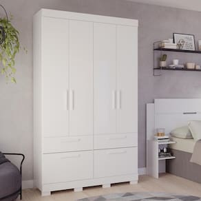 Guarda Roupa 4 Portas 3 Gavetas 1 Basculante 100% Mdf Porto Panan Branco