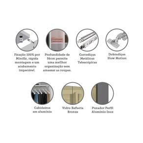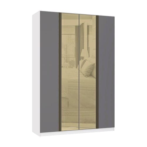 Guarda Roupa 4 Portas 3 Gavetas 159,2 cm com Vidro Reflecta Bronze Prime Luciane Móveis