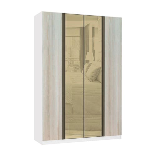 Guarda Roupa 4 Portas 3 Gavetas 159,2 cm com Vidro Reflecta Bronze Prime Luciane Móveis - Bege