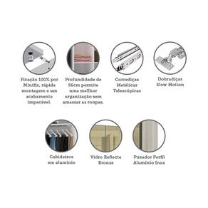 Guarda Roupa 4 Portas 3 Gavetas 159,2 cm com Vidro Reflecta Bronze Prime Luciane Móveis