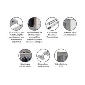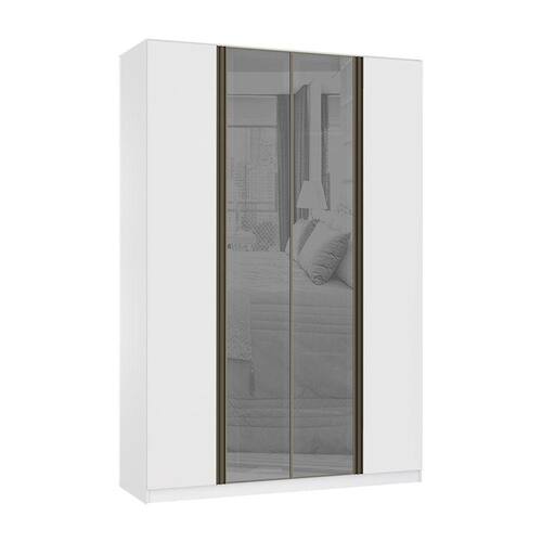 Guarda Roupa 4 Portas 3 Gavetas 159,2 cm com Vidro Reflecta Prata Prime Luciane Móveis - Branco
