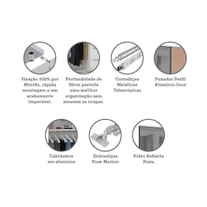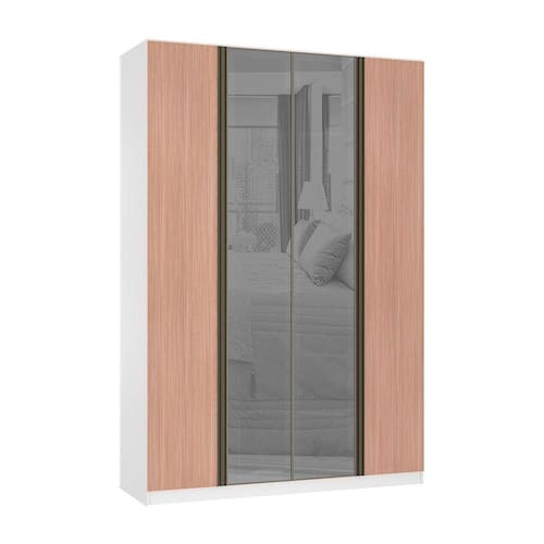 Guarda Roupa 4 Portas 3 Gavetas 159,2 cm com Vidro Reflecta Prata Prime Luciane Móveis - Palha