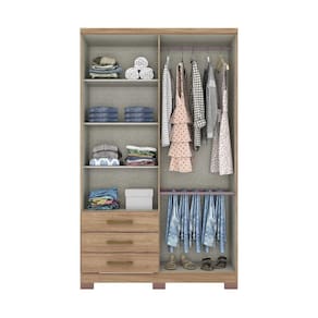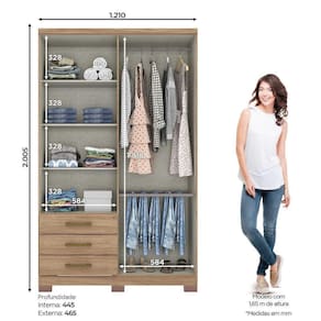 FICHA TECNICA: Cor Interna: Nas versoes Off White, Jequitiba Brilho e Castanho e Trama, na versao Branco e Trama Branco. Acabamento: Nas versoes Off White, Jequitiba Brilho e Branco a Pintura e UV e na versao Castanho a Pintura e UV Texturizada Escala de Brilho: Nas versoes Branco e Off White e Brilho e na versao Castanho HP e Fosco. Material Principal: MDF Qtd. Gavetas: 3 Und Peso Maximo por Gaveta: Cada gaveta suporta ate 3 Kg, a carga deve ser distribuida uniformemente. Material do Puxador Gaveta: ABS Material da Corredica: Metalica Simples Material da Gaveta: MDP Qtd. Portas: 4 Und Material das Portas: MDP Material da Dobradica: Metalica Material do Puxador Porta: ABS Tipo Porta: Bater Qtd. Prateleiras: 3 Und Peso Maximo por Prateleira: A Prateleira suporta ate 8 Kg, a carga deve ser distribuida uniformemente. Material da Prateleira: MDP Qtd. Pes: 6 Und Pes Regulaveis: Nao Possui Material Pes: ABS Altura Pes/Rodapes: 5 Cm Possui Rodizios: Nao Possui Produto Suporta ate (Kg): 65 Kg Possui Vidro: Nao Possui Possui Espelho: Nao Possui Possui Espaco para Vestidos Longos: Sim Possui Iluminacao: Nao Possui Ganchos: Nao Medidas Montado: (A x L x P) 200 x 121 x 46,5 Cm Peso Montado: 68 Kg