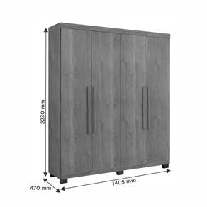 Este guarda-roupa é a solução perfeita para organizar suas roupas e acessórios. Produzido em MDP de 15mm, ele garante uma vida útil muito maior, proporcionando um excelente custo-benefício.Com 4 portas, 8 prateleiras e nichos, ele acomoda suas roupas com maior conforto, permitindo que você organize suas peças da maneira que preferir. Além disso, conta com 3 gavetas espaçosas com corrediças telescópicas, garantindo suavidade e durabilidade no uso diário. O cabideiro em alumínio é resistente e durável, perfeito para pendurar suas roupas sem preocupações. Os puxadores madeirados na cor do produto adicionam um toque de elegância e sofisticação ao móvel. Medidas do Produto Montado: Altura: 225cmLargura: 140cmProfundidade: 47cm Características: - Produto 100% 15mm MDP (Robusto)- 8 prateleiras- Kit pés Inclusos- Puxadores Madeirados- 4 Gavetas Internas com Corrediças Telescópicas- Cabideiro de Alumínio- Acabamento: Pintura UV- Recomendações de manutenção: Limpeza com pano umedecido. Não aplicar lustra móveis.- Complexidade da montagem: Difícil- Marca: Benetil Importante: - Não assumimos responsabilidade pela montagem do produto, recomendamos a contratação de um profissional montador de móveis;- Recomendações de uso, manutenção e limpeza: Pano levemente umedecido com sabão neutro;- É possível que ocorra uma leve discrepância de tonalidade entre a imagem e o produto real, devido ao processamento de imagens e a calibração de cores da sua tela;- Todos os acessórios decorativos apresentados nas imagens são meramente ilustrativos e não estão inclusos;- A entrega é realizada por transportadora, não nos responsabilizamos, no ato da entrega por desmontagens, subir escadas/elevadores ou transporte por guincho para apartamentos. Eventuais despesas são de responsabilidade do consumidor.- Antes de comprar o seu produto verifique as medidas e o local onde pretende instalar." ?