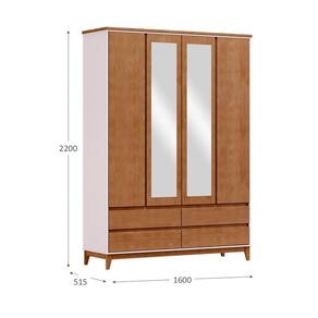 Produto: Guarda Roupa 4 Portas 4 Gavetas Cor: Off White / Freijó Linha: Prata Características: Pés exclusivos em Madeira Maciça (Freijó) Frentes de gaveta e Portas em Madeira Maciça (Freijó)
