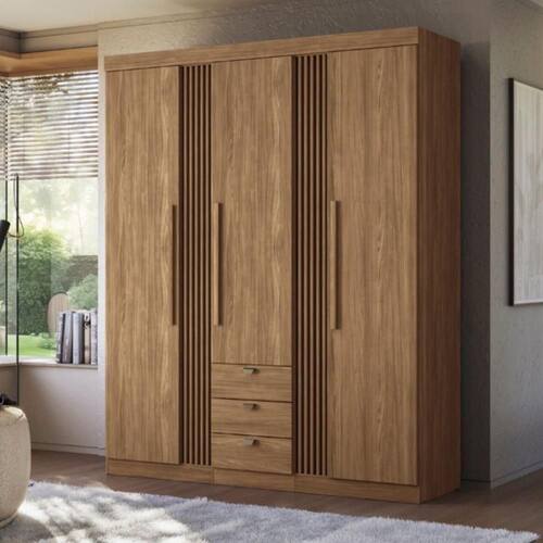 O Guarda-Roupa extremamente espaçoso, possui 04 portas de abrir e 04 amplas gavetas com corrediças telescópicas. É um móvel de alta qualidade, extrema beleza e sofisticação. É um roupeiro preparado e pensado para os mais exigentes gostos em funcionalidade e espaço, além de estar dentro da moda do ripado, alta tendência do mobiliário neste momento.
