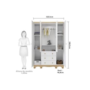 Todas as informações divulgadas são de responsabilidade exclusiva do fabricante/fornecedor. Tipo de Puxador: Puxador em ABS / PVC | Quantidade de Portas: 4 Portas de Abrir | Quantidade de Gavetas: 3 | Quantidade de Prateleiras: 5 | Tipo de Pintura: Ultravioleta | Tipo de Acabamento da Pintura: Atóxica | Tipo de Cabideiro: Aéreo | Material de Estrutura: MDF | Quantidade de Pés: 8 pés | Tipo dos Pés: ABS/PVC | Tipo de Dobradiças: Dobradiças Metálicas | Tipo de Corrediça: c/ Corrediças Telescópicas | Garantia: Garantia de 90 Dias | Certificação de Qualidade: Qualidade Aprovada | Material dos Cabideiros: Cabideira Metálico | Quantidade de Cabideiros: 1 Cabideiro | Montagem do Produto: Desmontável | Material das Prateleiras: Prateleiras em MDF | Material das Portas: Portas em MDF | Material das Gavetas: Gavetas em MDF | Sistema de Montagem: Inclui kit de instalação | Recomendações de Uso: Recomendações de Uso | Tipo de Porta do Guarda-Roupa: Portas de Bater | Estilo do Móvel: Moderno | Nossa Avaliação: Classificação de Qualidade Muito Boa | Código universal de produto (GTIN): 7898593997288 | Produto precisa de Montagem?: Sim, a montagem é simples mas sugerimos a contratação do nosso serviço de montagem (para os CEPs em que o serviço está disponível) ou de algum profissional experiente de sua preferência | Descrição do Tamanho: 188.50x:122.10x41.50 cm | Estado de Origem: RJ | País de origem: Nacional | Peso Produto Com Embalagem (Kg): 70.53 | Material para Filtro: N/I | Cor Mobly: N/I | Condição do Item: Novo | Link Site: https://www.costaricacolchoes.com.br/produtos/49069S6651/ | Numeral: 0 | Não se Aplica: N/A | Não Possui: Não | Linha/Modelo: junior | Cor Cnova: Branco | Cor Meli: Branco | Categoria - Sub: Guarda Roupa Infantil | Categoria - Pai: Quarto do Bebê | Comprimento Embalagem: 187.10 | Largura Embalagem: 40.50 | Altura Embalagem: 19.00 | Kit: 0 | Peso: 70.53 Kg | Peso Real Kg: 70.53 | Peso Cubado: 32.65 | Volumes: 3 | M3: 0.13 | Comprimento/Profundidade: 42 cm | Largura: 122 cm | Altura: 188 cm | Tamanho Montado: Larg:122.10 x Comp/Prof:41.50 x Alt: 188.50 | Comprimento/Profundidade Montado: 41.50 | Largura Montado: 122.10 | Altura Montado: 188.50 | MPN: 4688.1 | Cor Fabricante: Branco | Marca: Móveis Peroba | Fabricante: Móveis Peroba | Linha: junior