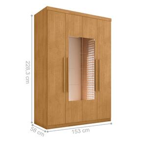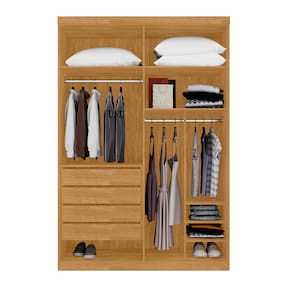 Feito em MDF 15mm.Possui 4 gavetas com corrediças telescópicas, 4 Portas , 6 prateleiras e 3 cabideiro.