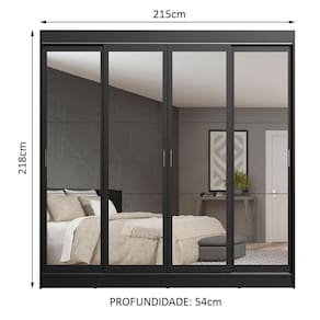 Medidas totais do guarda-roupa: 218 cm de altura x 215 cm de largura x 54 cm de profundidade.