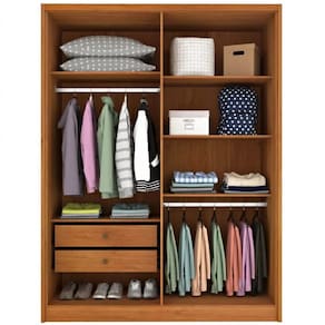 Características: Produto em MDP e MDF Puxador em MDF Gavetas com puxadores em PVC Corrediças telescópicas Cabideiros em alumínio