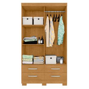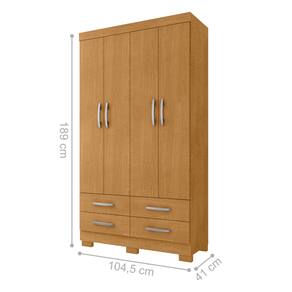 Feito em MDP 15mm.Possui 4 gavetas com corrediças telescópicas, 4 Portas, 2 prateleiras e 1 cabideiro.