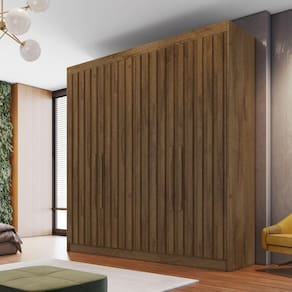 Guarda Roupa 4 Portas Potente 100% Mdf Móveis Europa Braúna O Guarda Roupa Potente - Moveis Europa une praticidade, espaco e elegancia em um so item. Seu design moderno e acentuado pelas portas ripadas de madeira, complementado por um acabamento em Verniz UV que proporciona uma escala de brilho semi-brilho e uma durabilidade excepcional. Fabricado em 100 MDF (Madeira de Reflorestamento), o roupeiro destaca-se pelas suas 4 portas elegantes com grandes puxadores em madeira e 3 gavetas internas, uma dessas gavetas possui chave, oferecendo seguranca adicional para seus itens mais preciosos e sao equipadas com puxadores modernos. O Guarda Roupa inclui ainda 1 sapateira com corredicas telescopicas, prateleiras espacosas e 2 cabideiros em aluminio, garantindo um excelente aproveitamento dos espacos internos e alta durabilidade. Para maior resistencia e durabilidade, o movel conta com costas parafusadas. Caracteristicas: Materiais: 100 MDF (Madeira de Reflorestamento) Acabamento: Verniz UV Escala de Brilho: Semi-Brilho Sistema de Montagem: Parafuso, Minifix e Cavilha Quantidade de Portas: 4 Quantidade de Gavetas: 3 Quantidade de Gavetas com Chave: 1 Quantidade de Prateleiras: 10 Quantidade de Sapateiras: 1 Quantidade de Cabideiros: 2 Corredicas: Telescopicas Puxadores externos: Madeira Material dos Cabideiros: Aluminio