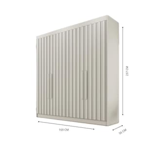 O Guarda RoupaPotente - Móveis Europaune praticidade, espaço e elegância em um só item. Seu design moderno é acentuado pelas portas ripadas de madeira, complementado por um acabamento em Verniz UV que proporciona uma escala de brilho semi-brilho e uma durabilidade excepcional. Fabricado em 100% MDF (Madeira de Reflorestamento), o roupeiro destaca-se pelas suas 6 portas elegantes com grandes puxadores em madeira e 6 gavetas internas, uma dessas gavetas possuem chave, oferecendo segurança adicional para seus itens mais preciosos e são equipadas com puxadores modernos. O Guarda Roupas inclui ainda 2 sapateiras com corrediças telescópicas, prateleiras espaçosas e cabideiros em alumínio, garantindo um excelente aproveitamento dos espaços internos e alta durabilidade. Para maior resistência e durabilidade, o móvel conta com costas parafusadas.