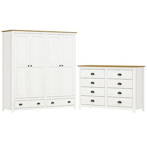 Conjunto Guarda-roupa e Cômoda projetado para quem busca aliar sofisticação e praticidade no seu espaço. Fabricado em madeira maciça, oferece durabilidade e resistência para o seu dia a dia. Seu design moderno se destaca pelos pés alongados em madeira, conferindo um toque de leveza ao móvel, e seu acabamento com pintura acetinada em verniz PU e UV que realça a beleza natural da madeira. O Guarda-roupa conta com 04 portas e 02 gavetas, além de prateleiras internas e 01 cabideiro em alumínio, oferecendo organização ível e suficiente para todos os seus itens. A Cômoda possui 08 gavetas espaçosas, aumentando ainda mais a capacidade de armazenamento para o seu ambiente. As gavetas possuem corrediças telescópicas, garantindo um deslizamento suave e silencioso, e as portas são equipadas com dobradiças com amortecimento, oferecendo um fechamento sem impactos. Os puxadores metálicos no estilo concha e botão trazem um charme extra ao design, combinando perfeitamente com o restante da peça. Estes móveis chegarão em sua casa separados em 04 volumes.