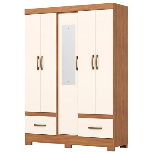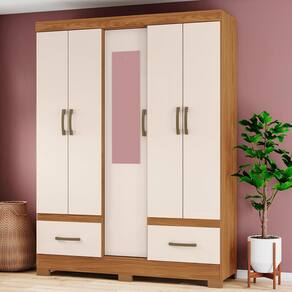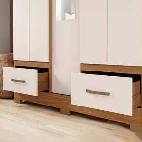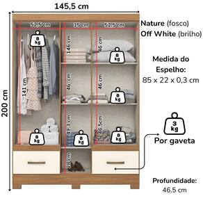 Guarda-roupa B60, pensado para compor ambientes com organização e bom aproveitamento do espaço. Produzido em MDP/MDF de 12/15 mm (fundo 3 mm) com pintura UV texturizada. Conta com portas e gavetas com dobradiças e corrediças metalicas, puxadores em ABS, prateleiras que suportam até 8 kg cada. O móvel conta com 6 pés em ABS com 5 cm de altura e cabideiro de madeira revestido, proporcionando um visual moderno. Porta central acompanha espelho (85 x 22 x 0,3 cm). Produto será entregue em 02 volumes.