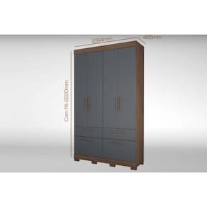 Material dos Cabideiros - Cabideira Metálico Tipo de Dobradiças - Dobradiças Metálicas Quantidade de Portas - 4 Portas de Abrir Tipo de Corrediça - c/ Corrediças Telescópicas Quantidade de Gavetas - 3 Tipo dos Pés - ABS/PVC Quantidade de Prateleiras - 3