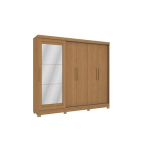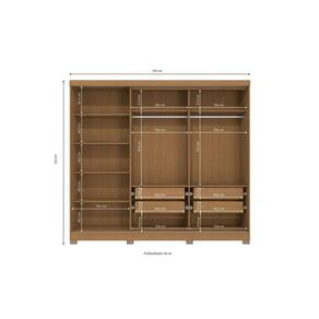 Seu quarto lindo e organizado com o Roupeiro CB01N564 da Kappesberg. Com cinco portas, sendo uma de correr, são 2,23m de altura, 2,45m de largura e 56cm de profundidade, todo produzido em chapa MDP de 15mm, o que garante mais robustez e qualidade. E com sete camadas de pintura na cor canela, na parte interna e externa, ele possui pintura touch, com a textura dos veios da madeira, garantindo destaque e aconchego. Na parte interna, com uma ótima divisão de espaço, ele possui nichos de tamanhos diferentes, cabideiros metálicos de suporte interno e gavetas com corrediças telescópicas, permitindo otimização do espaço. Os destaques ficam para a porta de correr com moldura, o espelho de corpo inteiro, puxadores em madeira e pés em polipropileno, completando o estilo e a qualidade do produto.