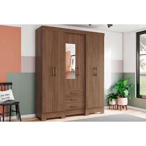 Guarda Roupa 6 Portas (1 c/ Espelho) e 3 Gavetas Briz B23 Castanho - Henn - Blush