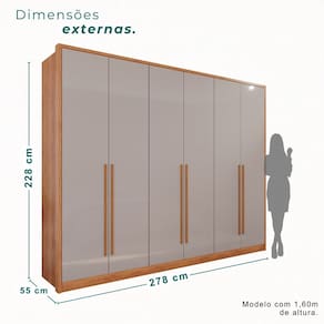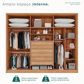 O Guarda-Roupa Anápolis 100% MDF Valverde Móveis, possui acabamento texturizado, moderno, encontrado apenas nas melhores fábricas de Minas. Este produto possui um contexto de conforto, qualidade e satisfação que atraem até os clientes mais exigentes, é um móvel conceitual e imponente, ele impressiona por sua grandiosidade, pelos espaços bem distribuídos e os detalhes pensados para atender as mais variadas necessidades do usuário, são eles: puxadores em MDF alongados com design moderno e funcional, portas com dobradiças slow 35 mm, cabideiros e calceiro metálicos, nichos central para acessórios, sapateiras e espaço para longos, gavetas com corrediças telescópicas e uma gaveta cofre com chave, para acomodar os seus pertences e proporcionar a melhor organização do espaço e segurança. Acabamento da Prateleira: Pintura Texturizada UV Escala de Brilho da Prateleira: Fosco Possui Cabideiros: 03 Acabamento da Gaveta: Pintura Texturizada UV Possui Organizador de Gaveta: Não Acabamento da Porta: Pintura Texturizada UV Escala de Brilho da Porta: Fosco Ambiente Principal: Quarto Complexidade da Montagem: Alta: deve ser montado por um montador especializado Cor: Cinamomo/Off White Cor do Produto: Cinamomo/Off White Escala de Brilho: Fosco Itens Inclusos: 1 Guarda Roupa, kit ferragens e manual de montagem Linha ou Coleção: Anápolis Manual de Montagem e Instalação: https://cdn2.madeiramadeira.com.br/atributo/valverde/2375175-3528-17272090229088.pdf Material da Gaveta: MDF Material da Porta: MDF Material da Prateleira: MDF Material Principal: MDF modular: Não Montagem Flex: Sim, o cliente tem a opção de montar o interno de 2 formas. Necessita Montagem: Sim Origem do Produto: Nacional Peso: 225,5 kg Peso Máximo por Gaveta: 5 kg Peso Máximo por Prateleira: 3 kg Possui Calceiros: Não Possui Espelho: Não Possui Pés: Não Possui Portas: Sim Possui Prateleiras: Sim Recomendações de Uso, Manutenção e Limpeza: Pano levemente umedecido e pano seco. Não utilizar produtos de limpeza abrasivos. Sistema de Montagem: Parafusos, Cavilhas, Dobradiças e Puxadores. Tipo de Corrediça da Gaveta: Metálica Telescópica Tipo de Dobradiça/Corrediça da Porta: Metálica Tipo de Gaveta: Interna Tipo de Guarda-Roupa: Casal Tipo de Puxador da Gaveta: Não Possui Tipo de Puxador da Porta: Externo