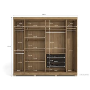Dimensões(Cm): Comprimento(Profundidade): 53cm x Largura: 240cm x Altura: 223cm