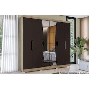 Tipo de Cabideiro - Aéreo Material dos Cabideiros - Cabideira Metálico Tipo de Dobradiças - Dobradiças Metálicas Diferenciais das Portas - Porta c/ Espelho Quantidade de Portas - 6 Portas de Abrir Tipo de Corrediça - c/ Corrediças Telescópicas Quantidade de Gavetas - 3 Tipo dos Pés - Pés em ABS Quantidade de Prateleiras - 7 Quantidade de Nichos - 1 Nicho