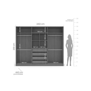 Dimensões(Cm): Comprimento(Profundidade): 46cm x Largura: 242cm x Altura: 200,4cm