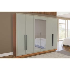 Guarda Roupa Casal 6 Portas (2 c/ Espelho) e 4 Gavetas Valência Freijo/Verde - Politorno